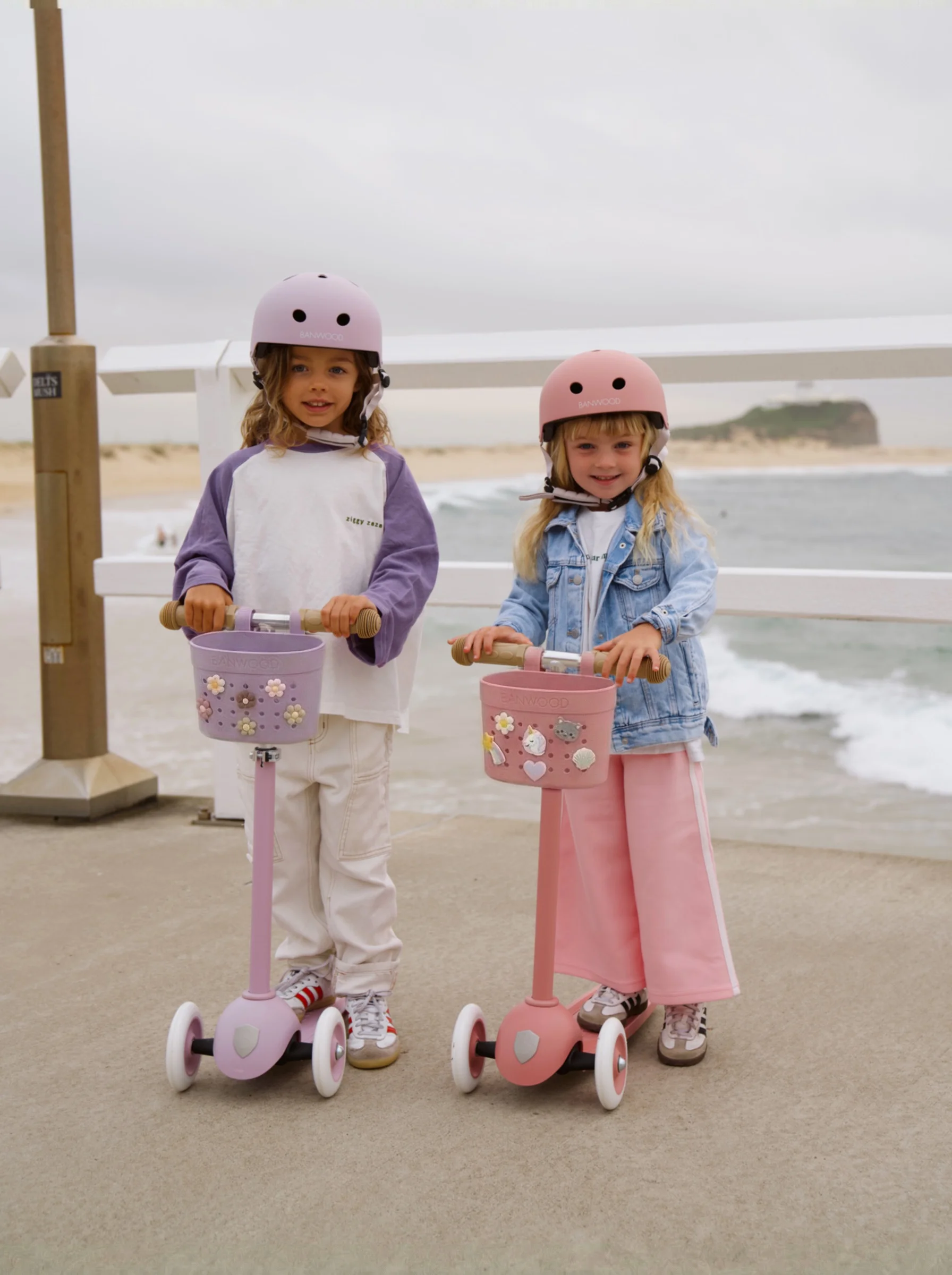 - Dekoratyviniai ženkliukai – lengvai tvirtinasi prie krepšelio ir leidžia sukurti unikalų paspirtuko stilių