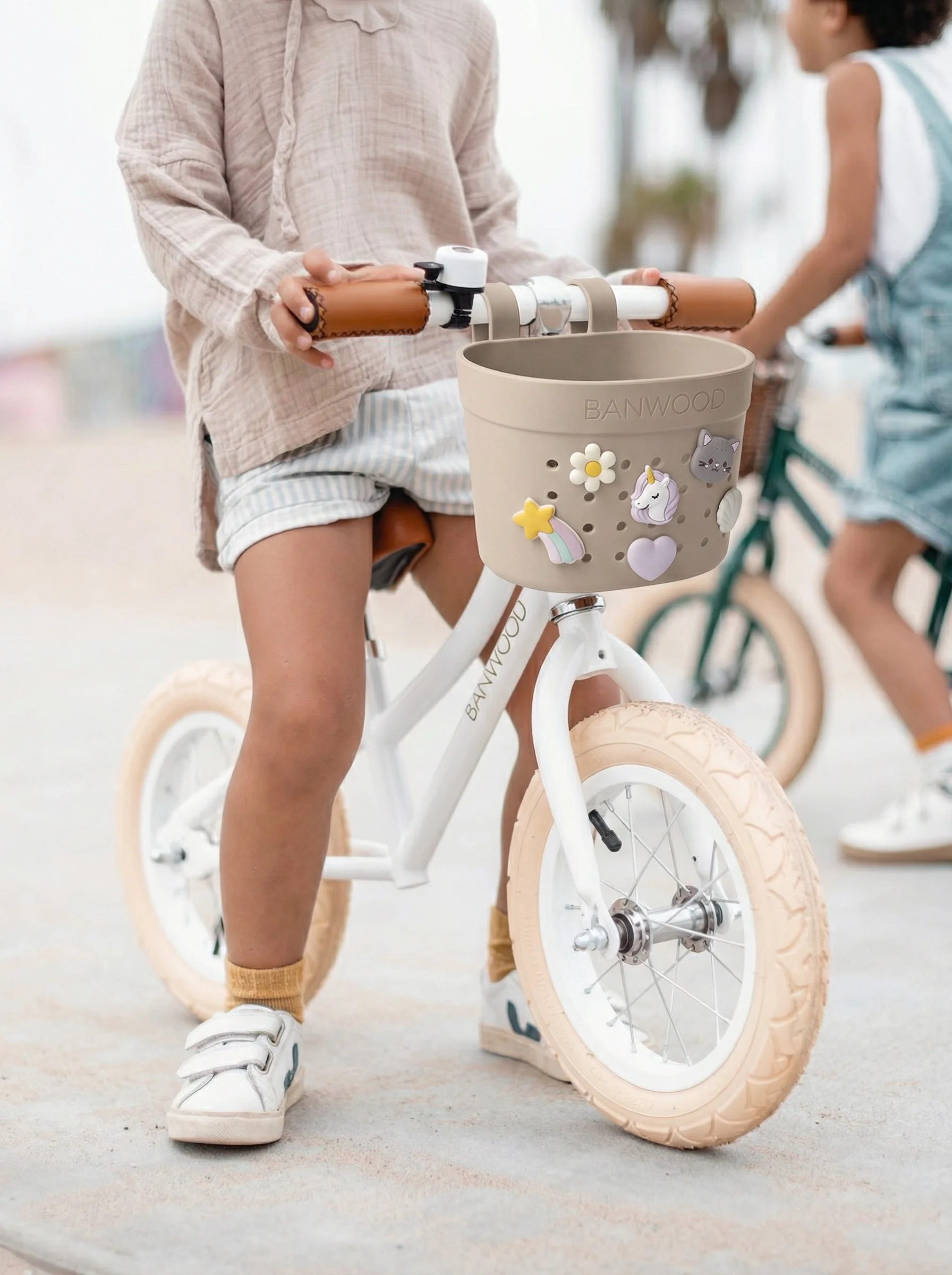 Banwood dekoratyviniai ženkliukai leidžia vaikams papuošti savo krepšelį ir susikurti unikalų paspirtuko ar dviračio stilių. Juos lengva įspausti, išimti ir keisti – todėl vaikai gali kurti vis naujas kombinacijas.