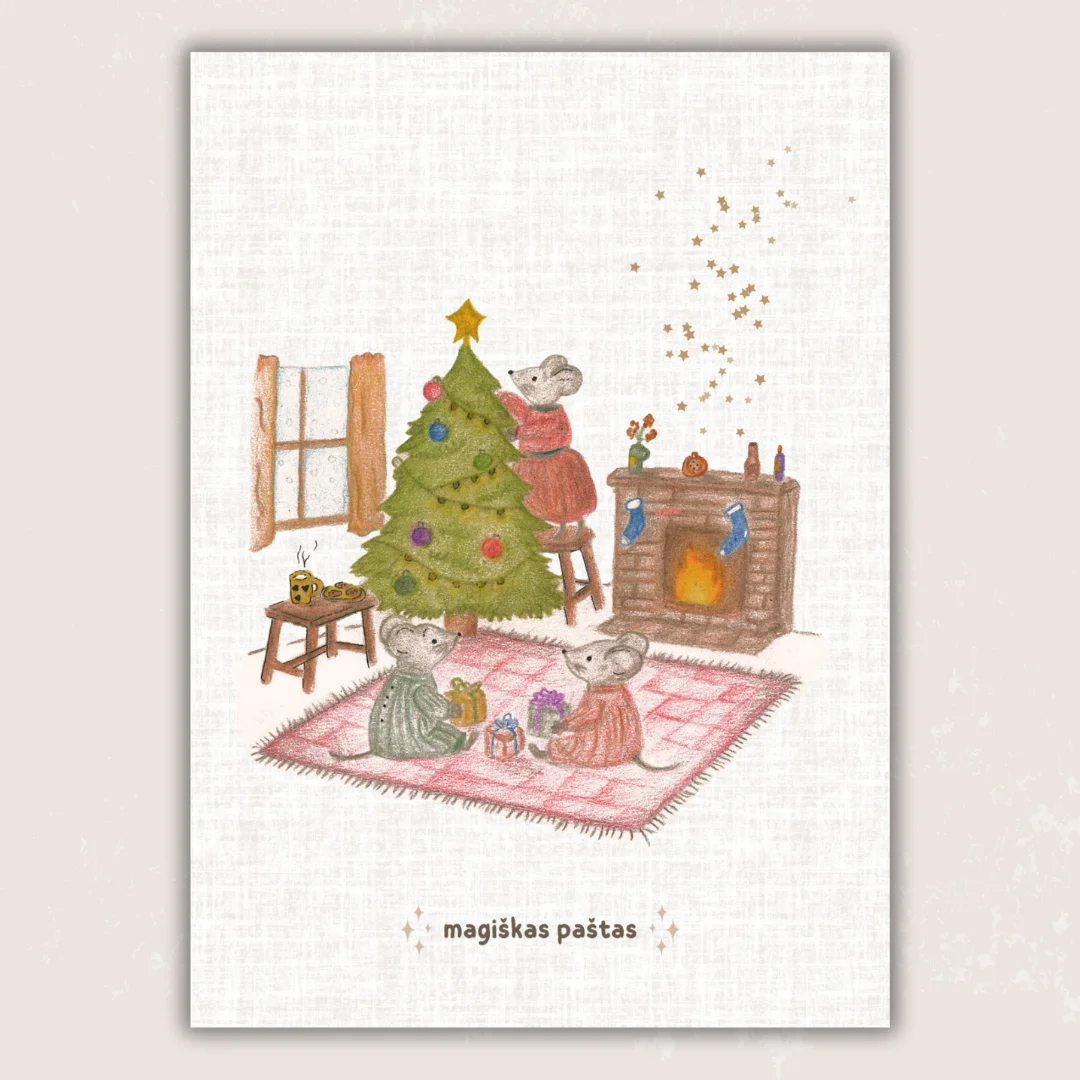 Riboto leidimo kolekcijos kalėdinis atvirukas taps jaukiu akcentu prie dovanos ir perduos jūsų norimą žinutę mylimam žmogui. Ranka pieštos Iliustracijos suteikia atvirukui unikalumo ir vertės.