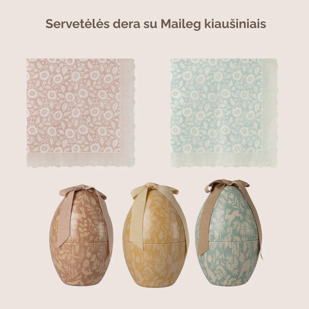 Dekoruokite Velykų stalą gražiausiomis Maileg servetėlėmis. Jos puikiai dera su metaliniais Maileg kiaušiniais. Pakuotėje yra 20 servetėlių. Servetėlės ​​dydis 15×15 cm (neišskleistos).