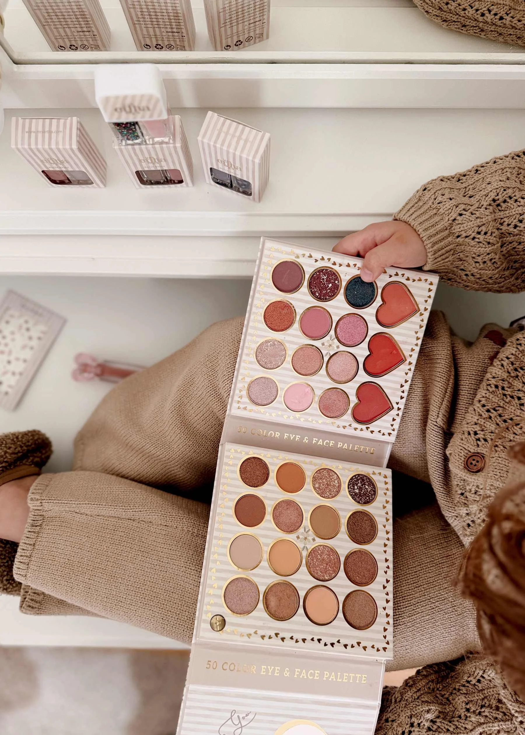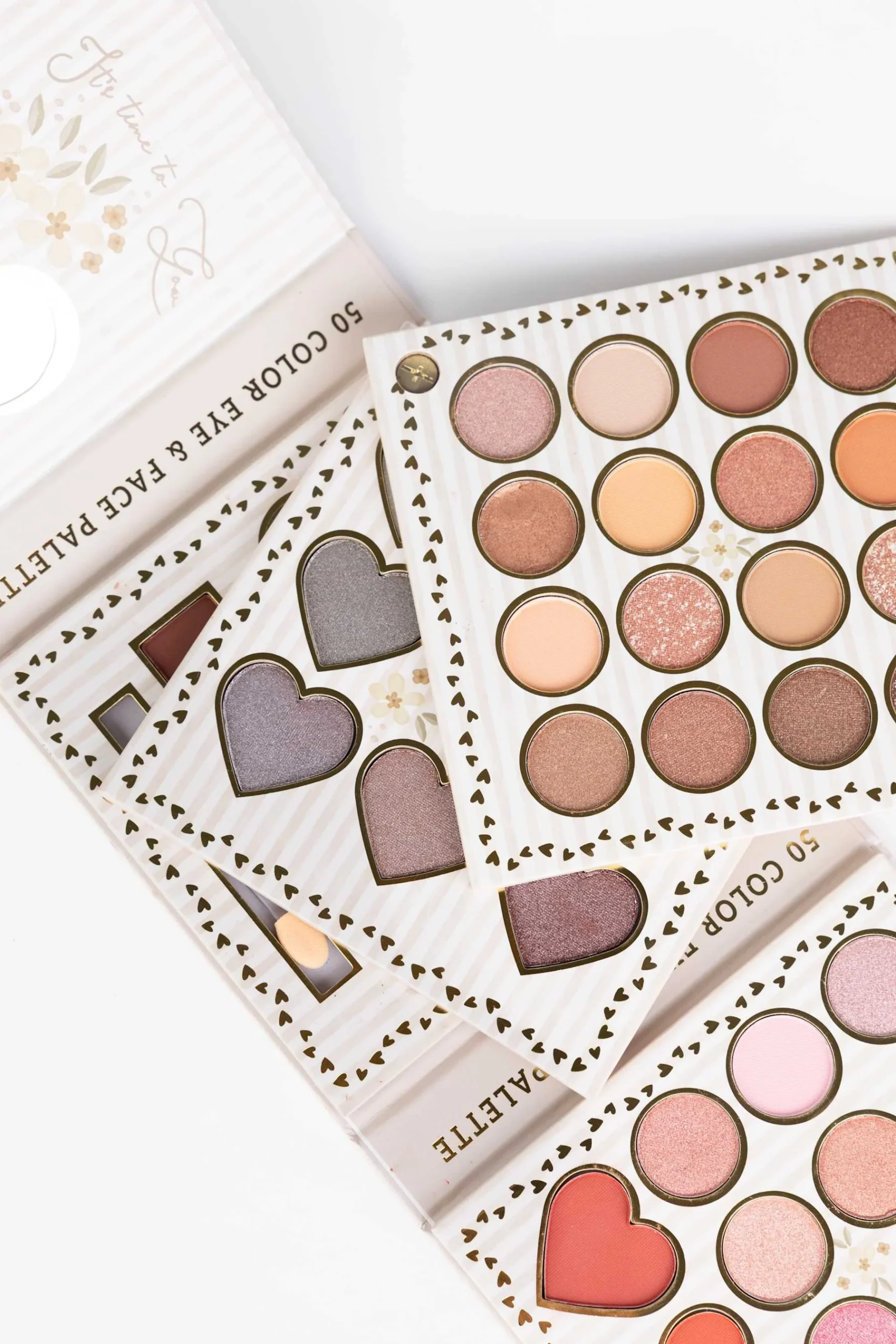 Išskleidžiama akių ir veido paletė. Paletėje rasite net 50 spalvų.