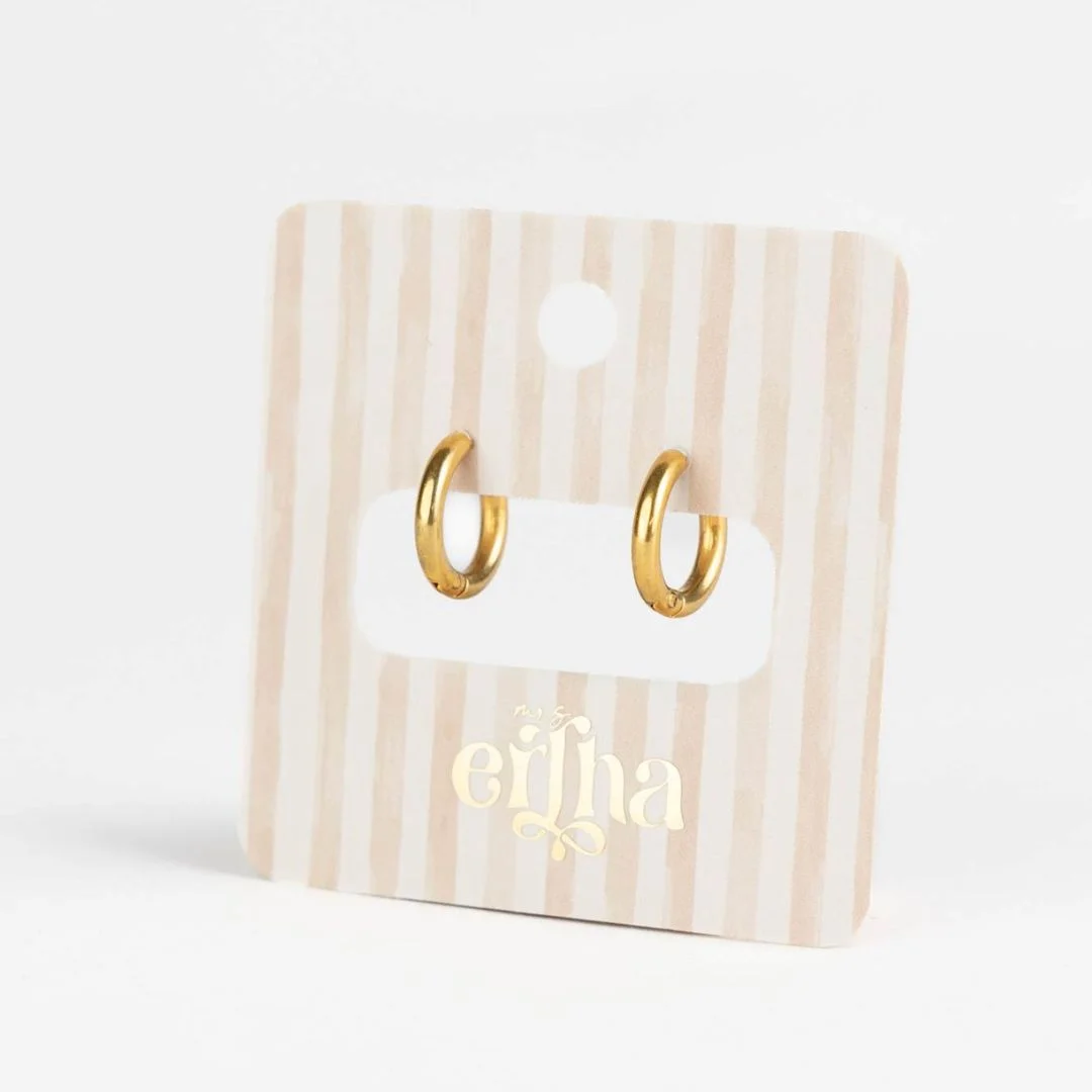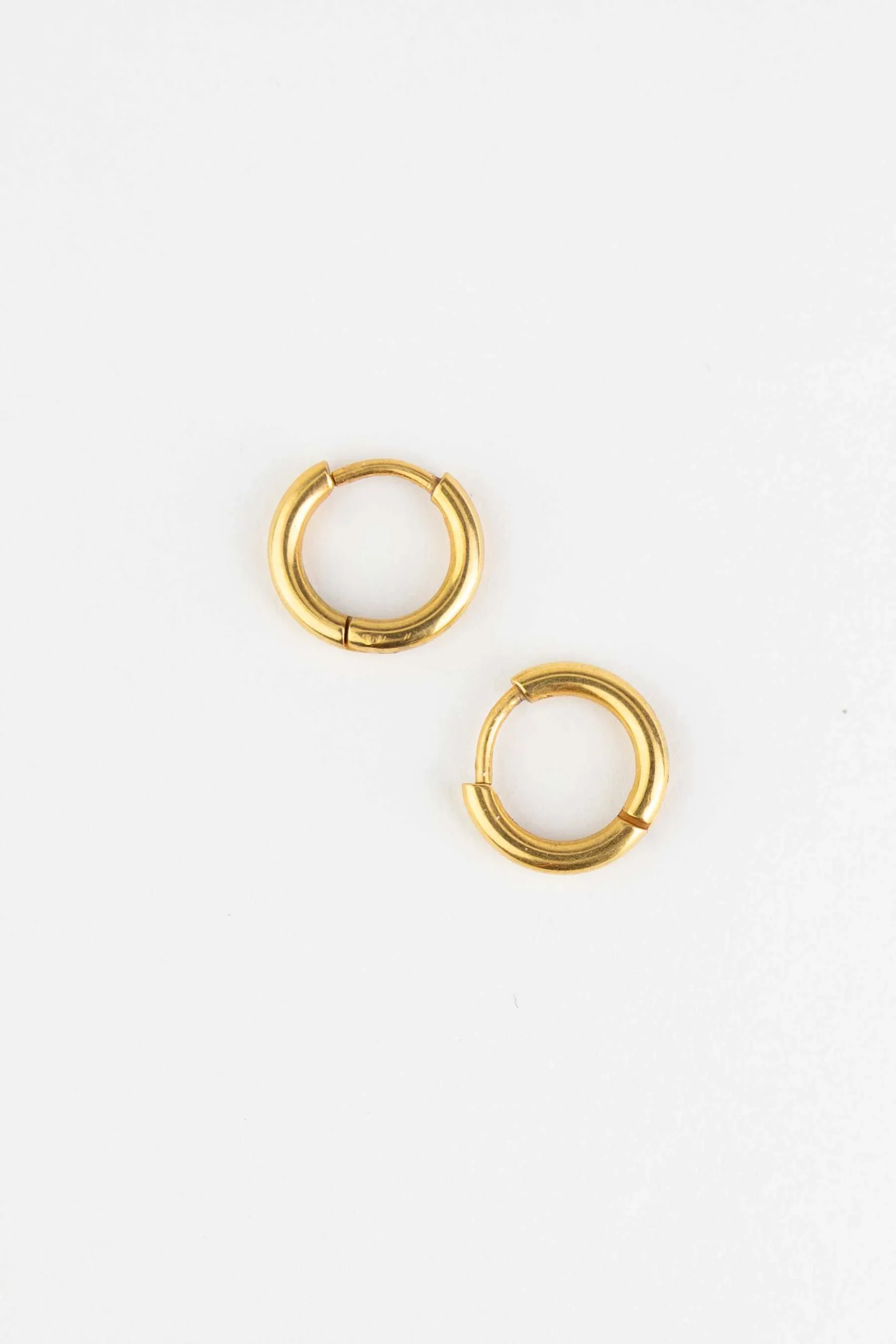 Auskarai/rinkutės – nesenstanti klasika, tinkanti kaip kasdienis aksesuaras. Pagaminti iš paauksuoto nerūdijančio plieno. Jie yra hipoalergiški, atsparūs vandeniui ir saugūs nešioti visą parą – net ir vaikams su jautriomis ausimis.