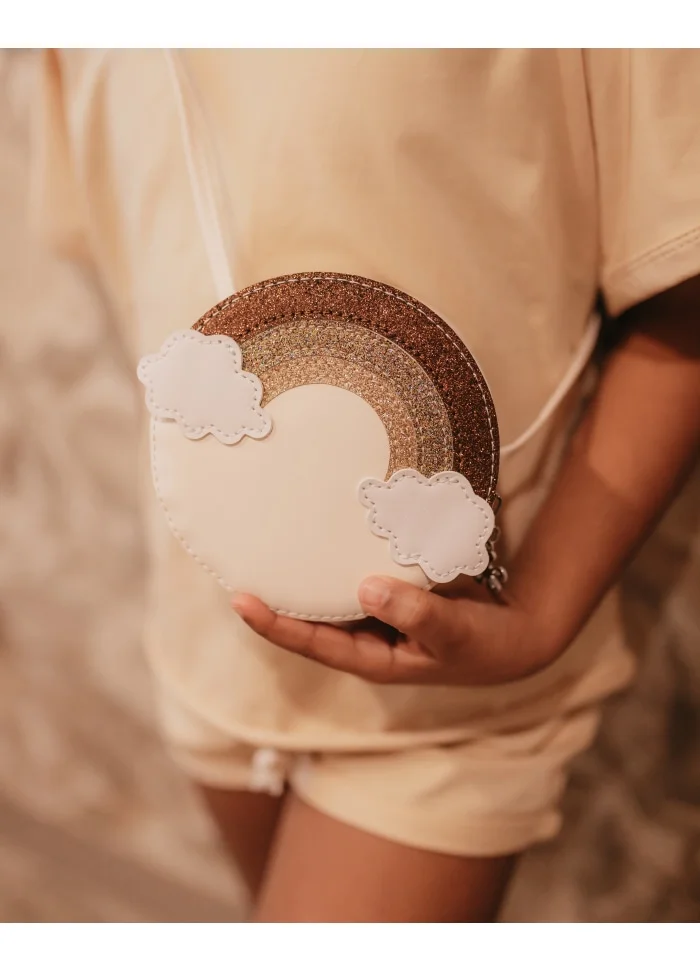 Žaismingos formos mini rankinukas – piniginė, pagaminta iš PU odos, su užtrauktuku ir reguliuojamu raišteliu.