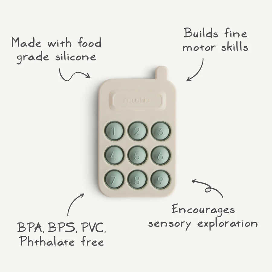 2026-01-28Mushie – silikoninis spaudymo žaislas – žalsvas telefonas