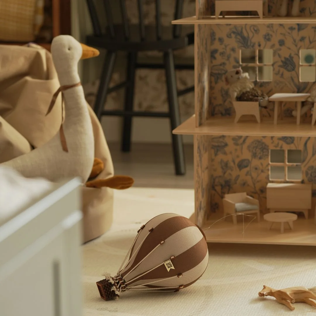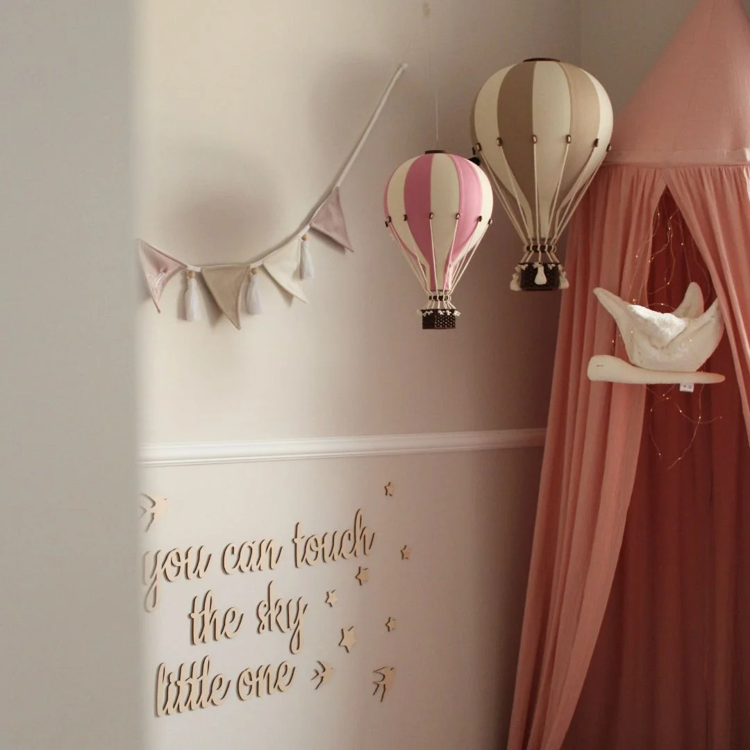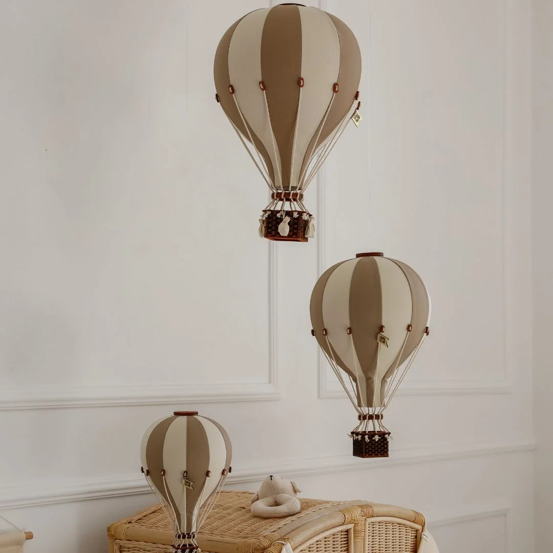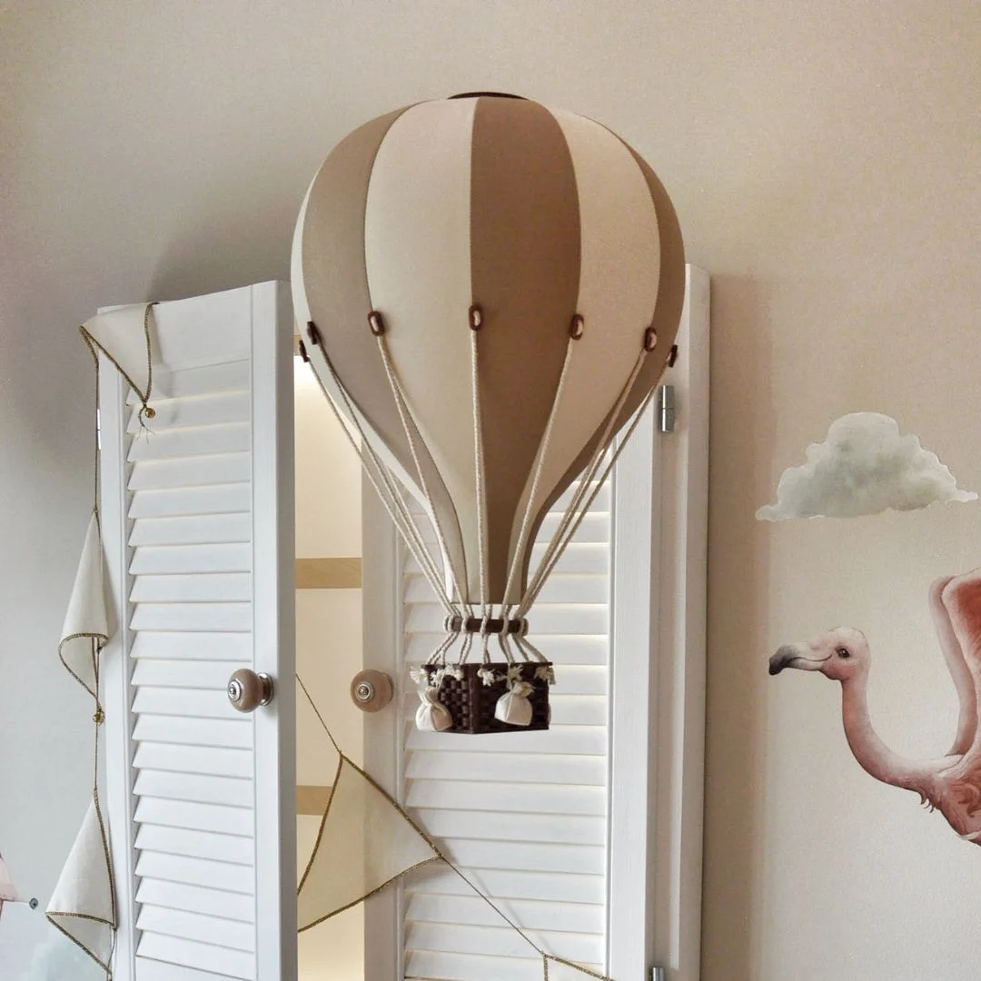 Sukurkite stilingą ir magišką atmosferą vaikų kambaryje ar žaidimų erdvėje su šiuo ypatingai stilingu dekoratyviniu oro balionu. Rankų darbo balionas atrodo neįtikėtinai realistiškai – pintas krepšys, tvirtas balionas ir virvelės sukuria tikro karšto oro baliono vaizdą. Balionas pagamintas iš itin kokybiškų medžiagų, todėl yra ilgaamžis ir lengvai tvirtinimas prie sienos arba lubų.