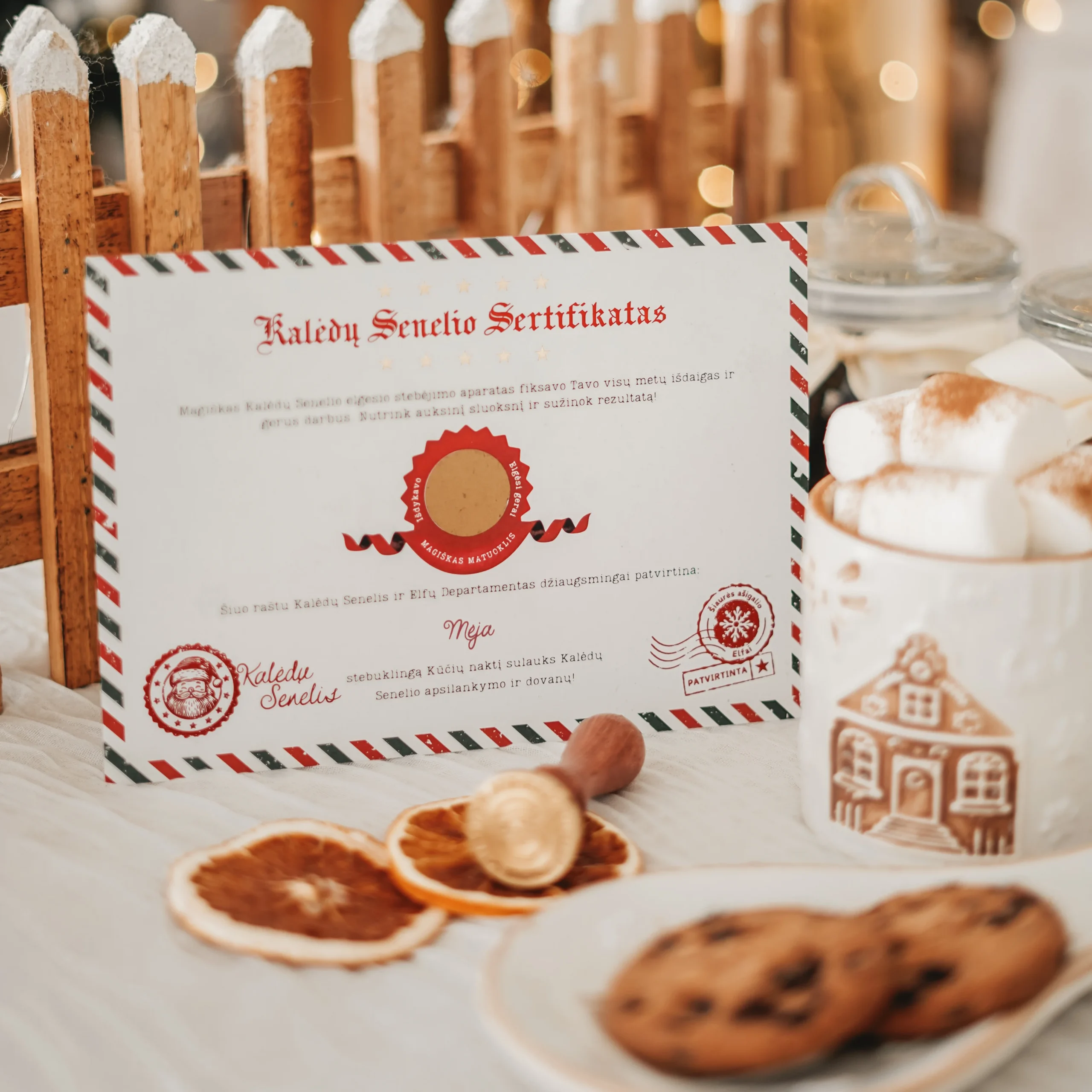 - Personalizuotas Kalėdų Senelio sertifikatas (paminimas vaiko vardas)