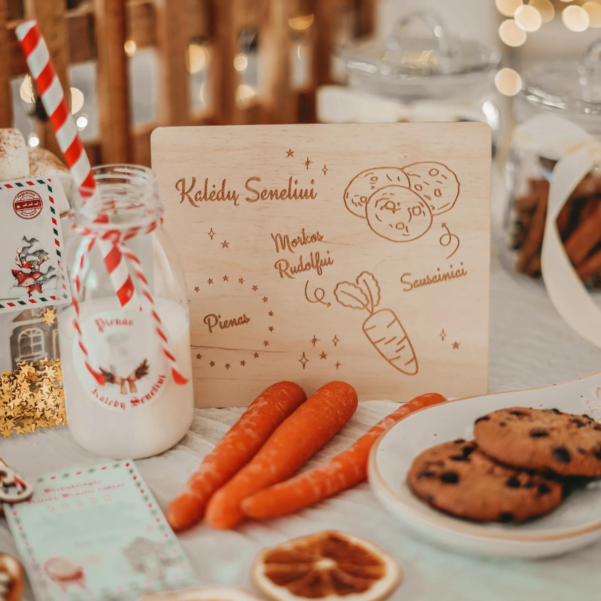 - Medinis padėkliukas sausainiui, morkytėms ir pienui