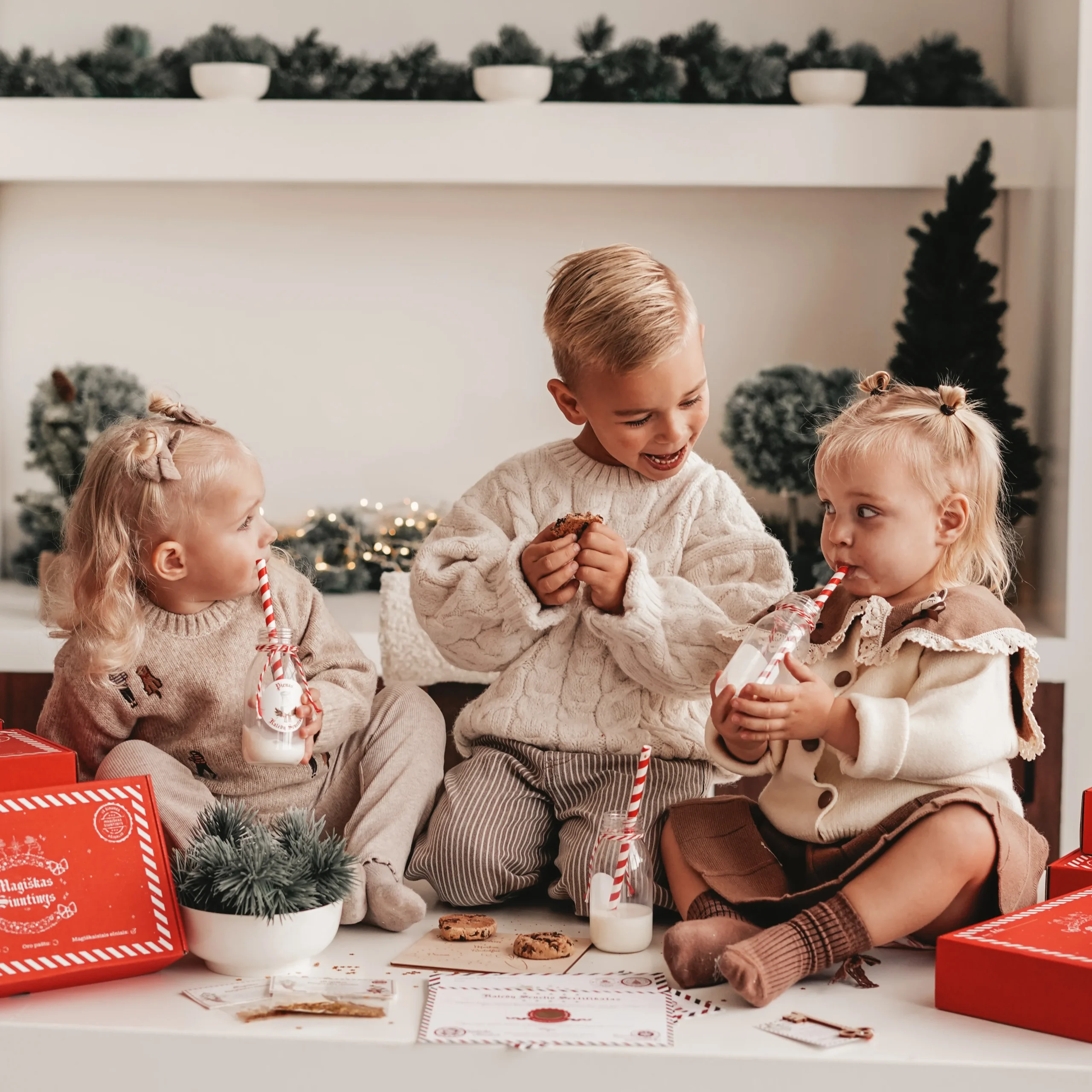 Šis rinkinys apjungia du magiškiausius produktus – unikalią Kalėdų Senelio dėžutę ir elfo išdaigininko rinkinį.  Personalizuoti laiškai su vaiko vardu, užduotėlės, sertifikatai bei magiški atributai sukurs nepamirštamus įspūdžius, o elfas su savo išdaigomis kasdien sukursk linksmą atmosferą. Viskas apgalvota už jus – laiškai, kortelės ir išdaigų idėjos paruoštos, tad beliks mėgautis šventine magija kartu su vaikais.