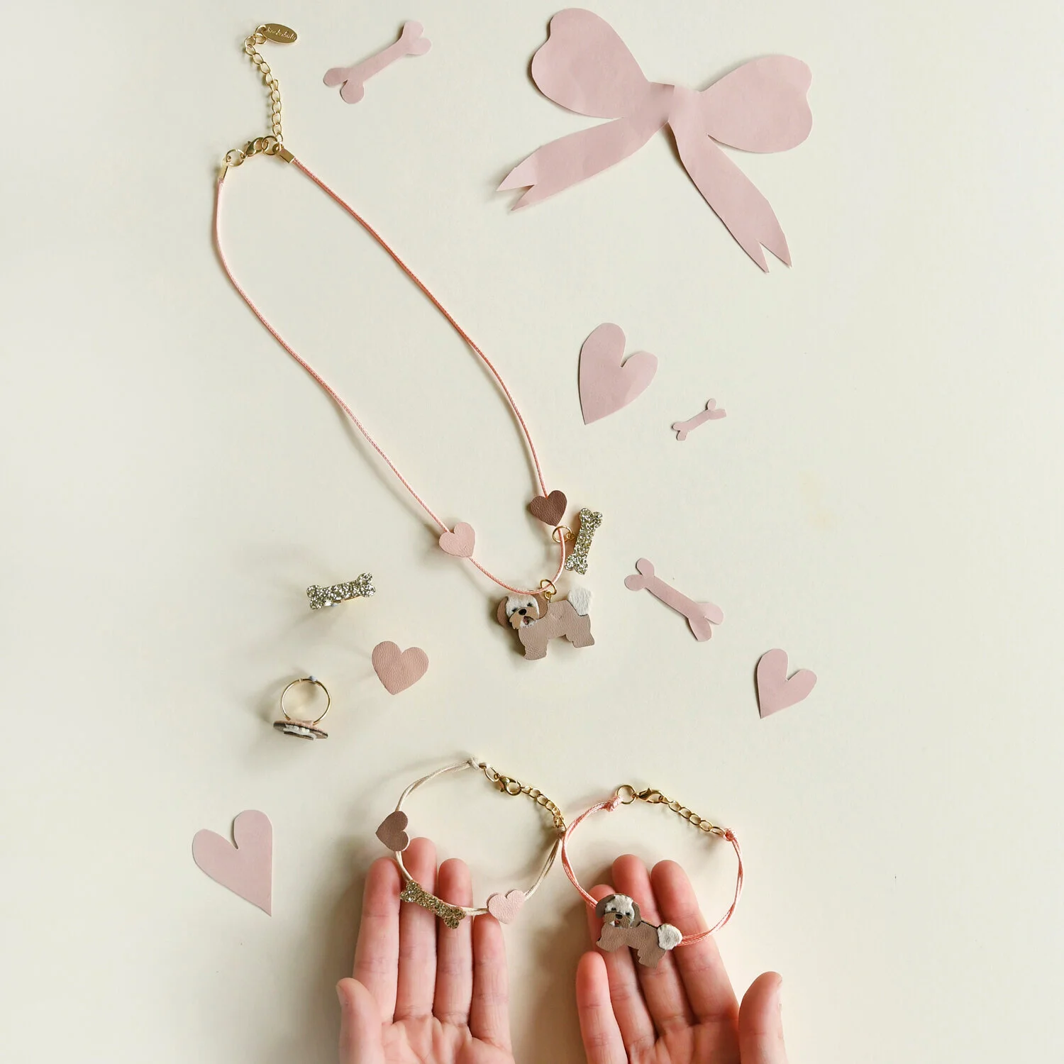 Žavingas Rockahula vėrinys vaikams. Vėrinį puošia mielas šuniukas ir širdelių detalės. Jis turi prailginimo grandinėlę, todėl lengvai pritaikomas patogiam nešiojimui.