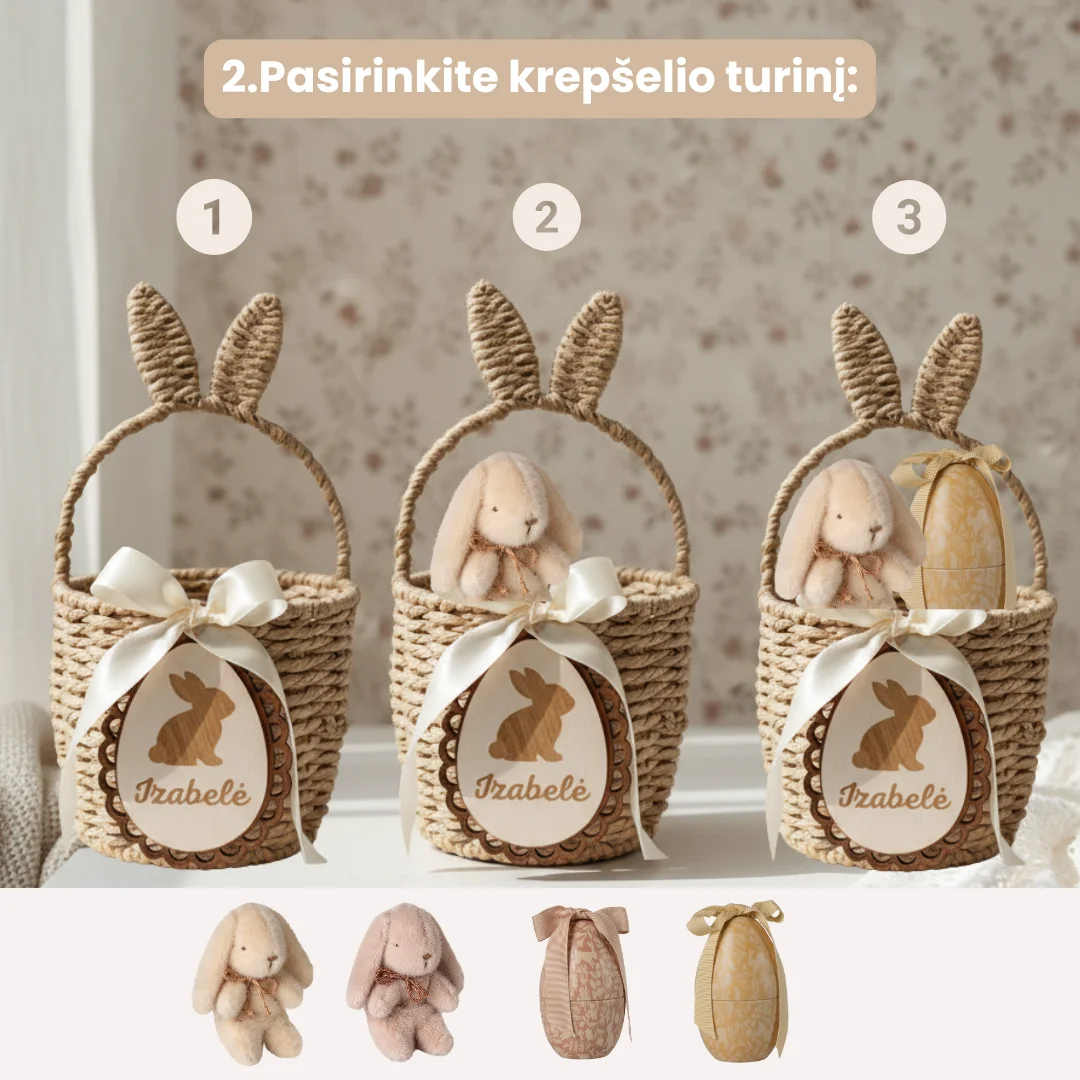 - Velykinis krepšelis su vaiko vardu