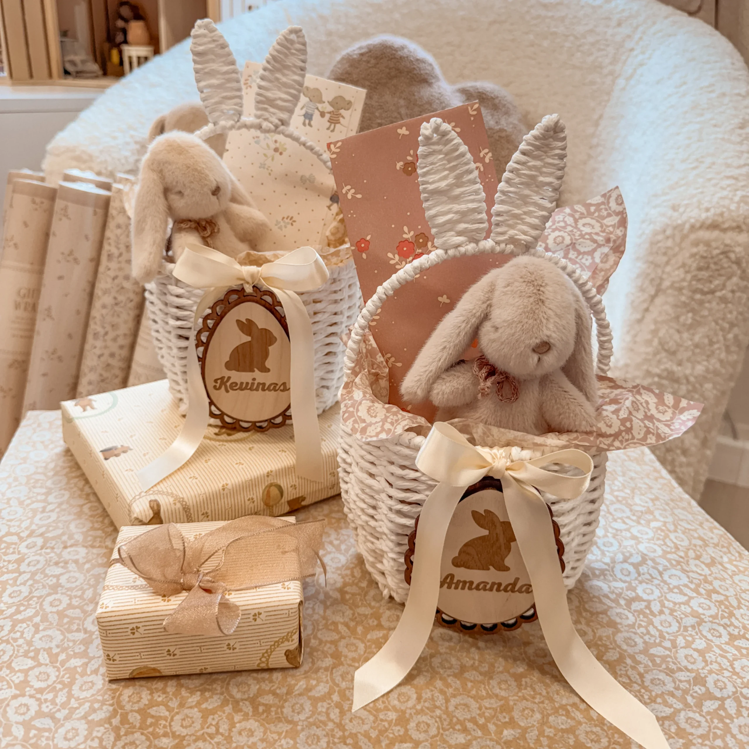 - Velykinis krepšelis su vaiko vardu + 13 cm Maileg zuikutis (sutaupote 7€)